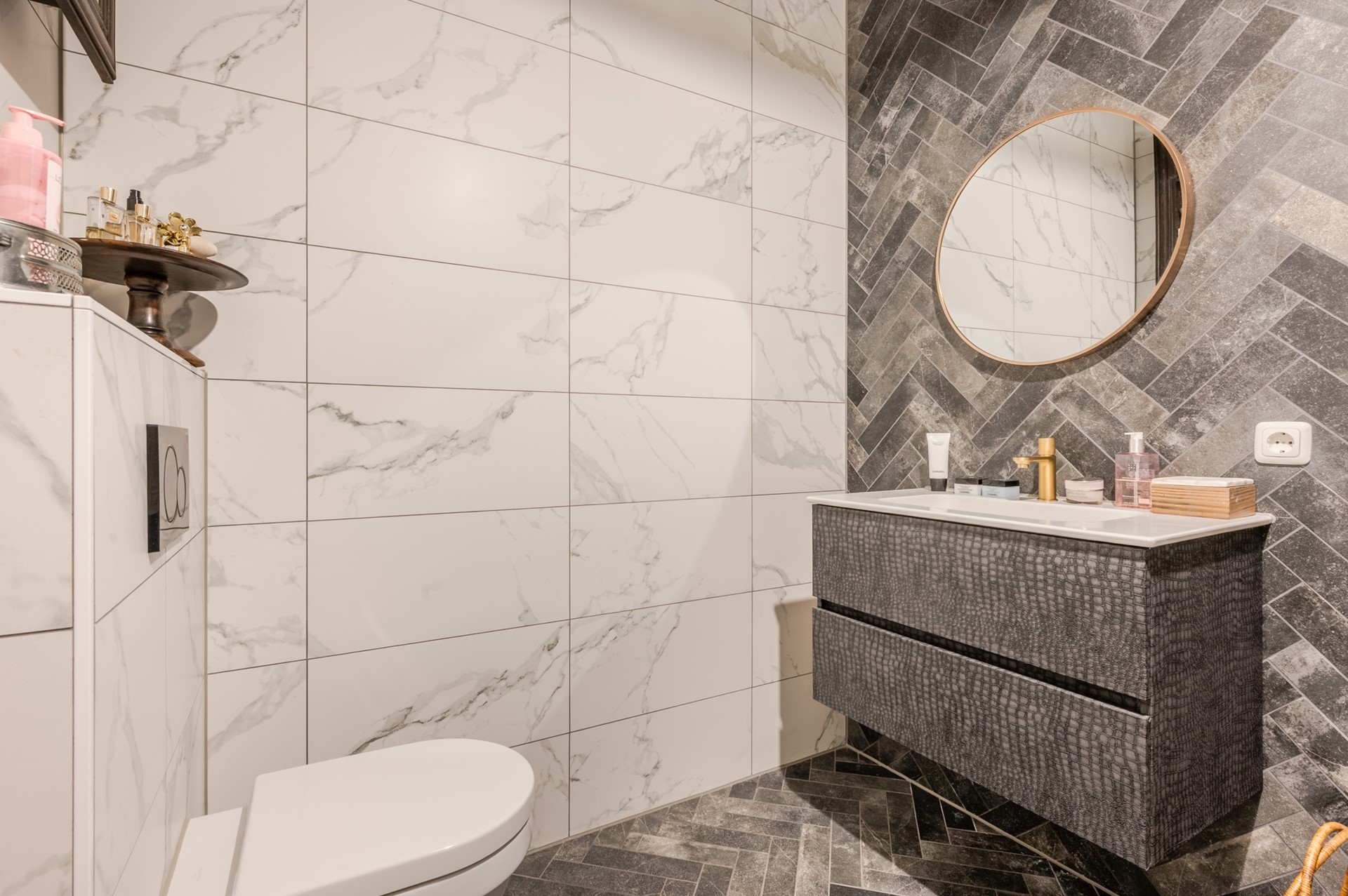 Er is ook nog een aparte toiletruimte met zwevend toilet en fonteintje aanwezig.